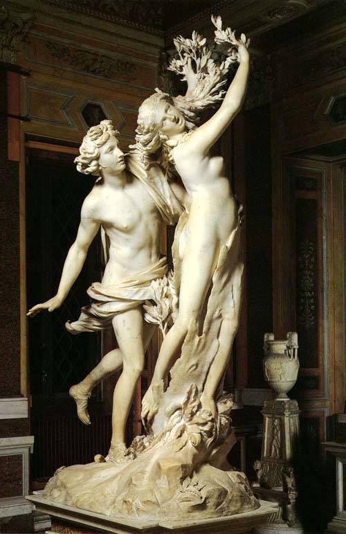 에로스의 화살을 맞은 아폴론은 다프네를 사랑하게 되지만, 다프네는 신의 사랑을 거부한다. 다프네를 발견한 아폴론은 사랑을 호소하기 위해 쫓아가지만 다프네는 도망을 간다.